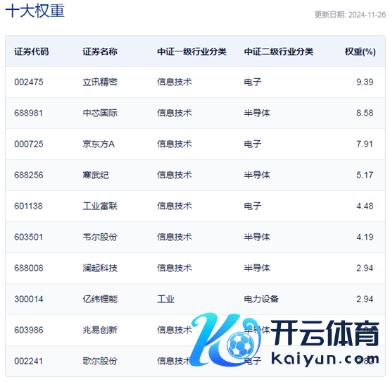 中证破费电子主题指数主要权重股
