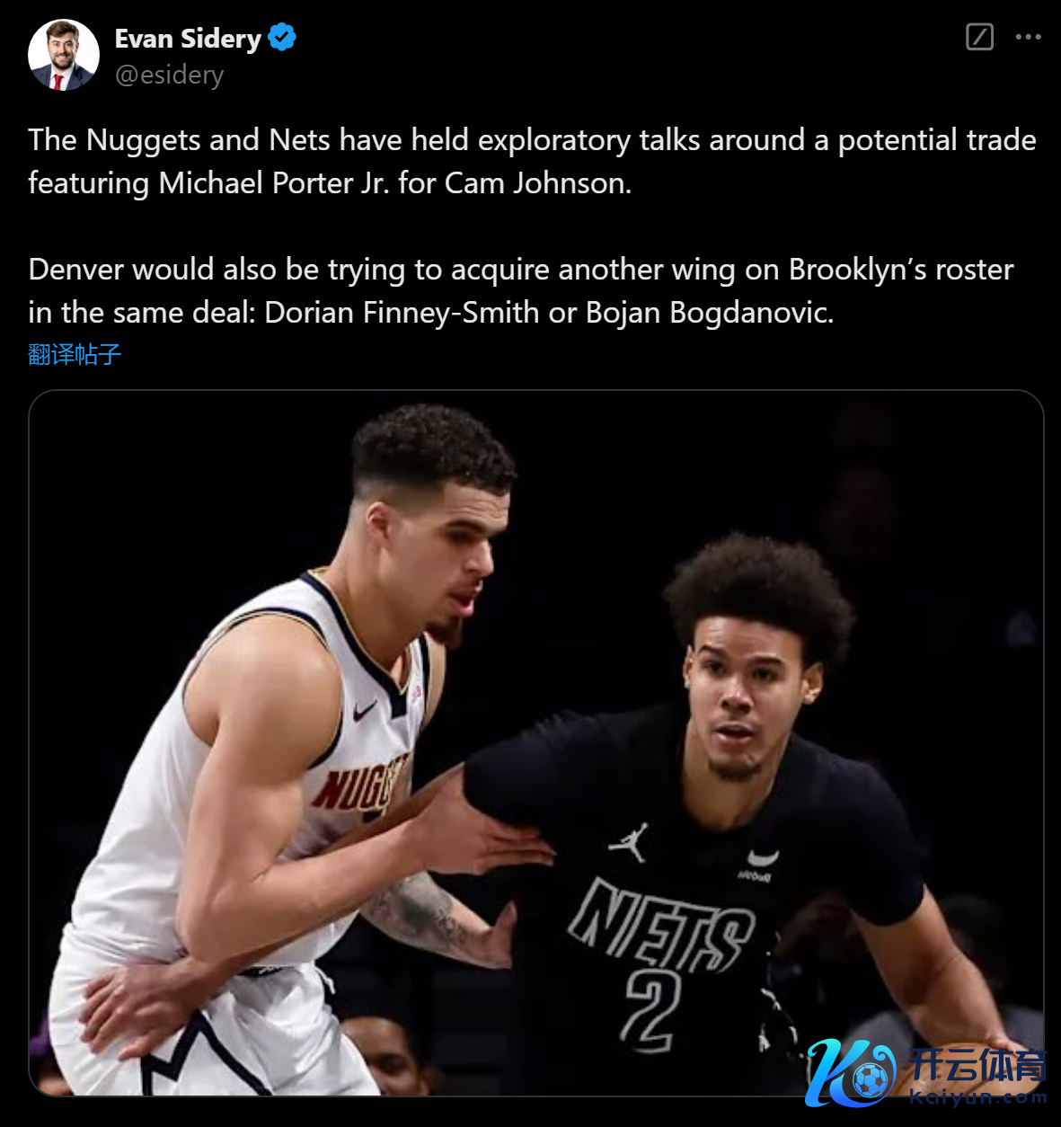 第二个宗旨是篮网的卡梅伦-,据福布斯体育名记Evan Sidery报谈,掘金一经和篮网进行了初步的交游探讨,掘金快意送出小波特来取得卡梅伦-约翰逊,另外掘金还念念在这笔交游中取得芬尼-史姑娘或博扬。卡梅伦-约翰逊本赛季场均能取得18.6分4.2板3助攻,射中率48.4%,场均投中3.2个三分,三分射中率43.3%。如若这笔交游轻率收场,掘金能在迫切水平没下落的情况下显著进步扎眼水准,举座战力也会取得显著进步。