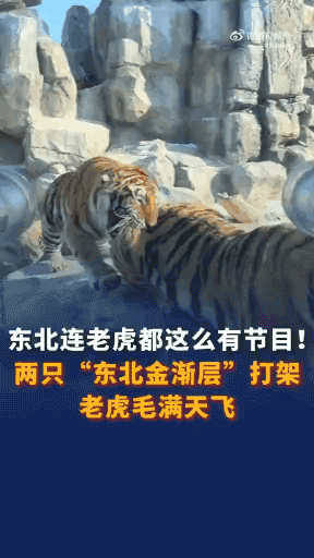 近日,近日,哈尔滨。网友记录下两只东北虎打闹的画面:一只老虎趁另一只老虎舔毛时在背面偷袭,一会儿两虎争斗起来。东北连老虎皆知说念“加戏”。网友:跟我家猫打架相似相似的!