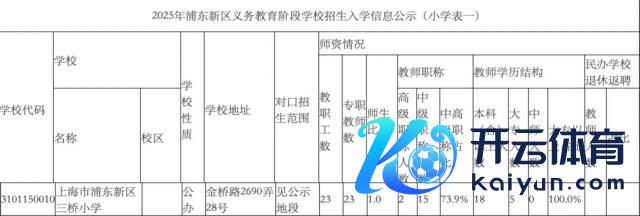 2025 年浦东新区义务素养阶段学生招生入学信息公示走漏该校专职西宾为 23 东说念主。(泉源 / 浦东新区素养局官网)