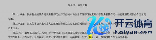 检索《住房租赁条例》全文,仅在第 30 条说起了"税务"二字